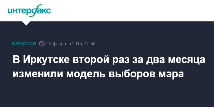 Москва. 18 февраля. INTERFAX.RU - Законодательное собрание Иркутской области приняло в среду в первом и окончательном чтении поправки в закон о формировании органов местного самоуправления, изменяющие модель избрания мэра Иркутска.