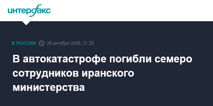 Москва. 29 октября. INTERFAX.RU - Семеро высокопоставленных чиновников иранского правительства погибли в среду в результате автокатастрофы, которая произошла в провинции Лорестан на западе Ирана, сообщает иранский англоязычный телеканал Press TV.