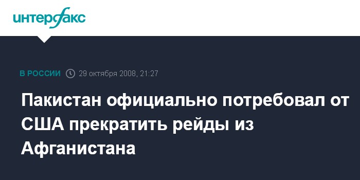 Москва. 29 октября. NTERFAX.RU - МИД Пакистана в среду вызвал американского посла Энн Паттерсон и передал ей требование немедленно прекратить военные операции на пакистанской территории, сообщает британская газета Times.