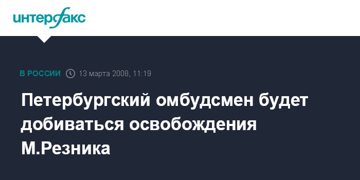 Петербургский омбудсмен будет добиваться освобождения М.Резника