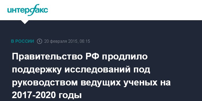 Правительство РФ продлило поддержку исследований под руководством ведущих ученых на 2017-2020 годы
