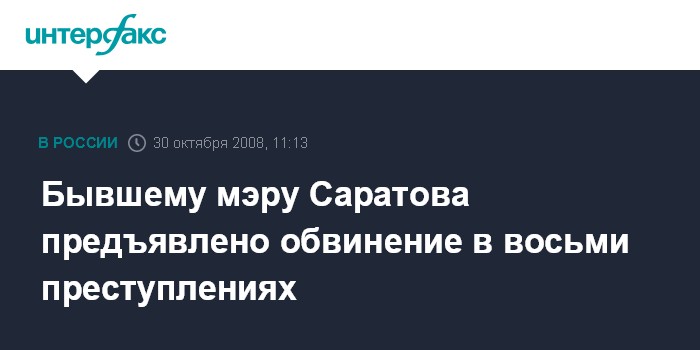 Бывшему мэру Саратова предъявлено обвинение в восьми преступлениях