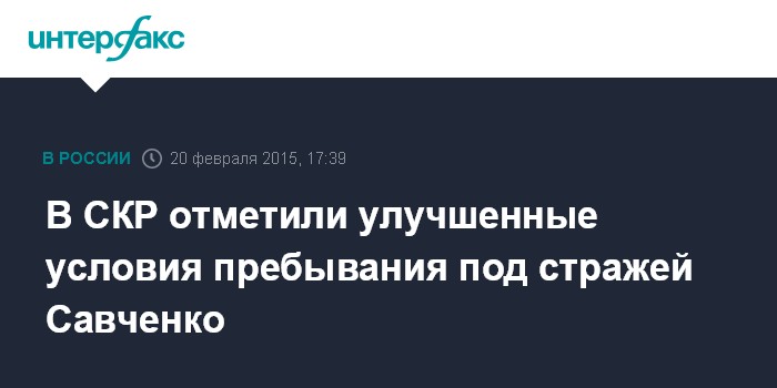 Москва. 20 февраля. INTERFAX.RU - Украинская военнослужащая Надежда Савченко содержится в более комфортных условиях, нежели другие арестанты, заявил официальный представитель Следственного комитета РФ Владимир Маркин.