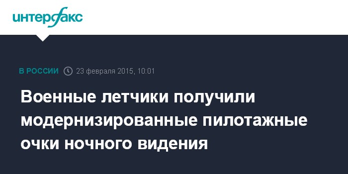 Москва. 23 февраля. INTERFAX.RU - На вооружение авиационных подразделений Центрального военного округа, дислоцированных в Сибири, поступили модернизированные пилотажные очки ночного видения "ГЕО-ОНВ1-01", сообщает пресс-служба ЦВО.