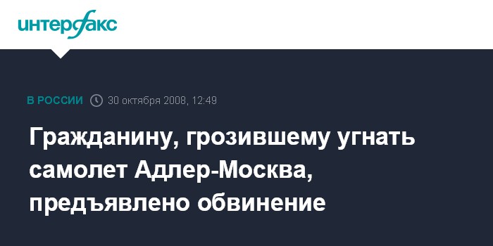 Гражданину, грозившему угнать самолет Адлер-Москва, предъявлено обвинение