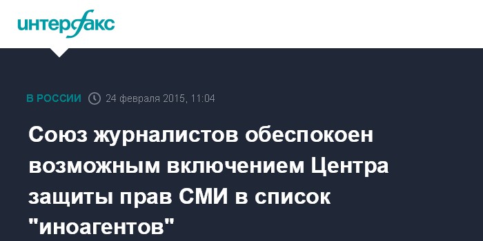 Москва. 24 февраля. INTERFAX.RU - В Союзе журналистов России (СЖР) бьют тревогу в связи с ситуацией с Центром защиты прав средств массовой информации, который власти намерены включить в список "иностранных агентов".