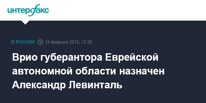 В связи с истечением срока полномочий губернатора Еврейской автономной области Александра Винникова президент постановил: "назначить Левинталя Александра Борисовича временно исполняющим обязанности губернатора Еврейской автономной области до вступления в должность лица, избранного губернатором Еврейской автономной области".
