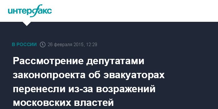 Рассмотрение депутатами законопроекта об эвакуаторах перенесли из-за возражений московских властей