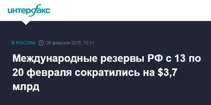 Международные резервы РФ с 13 по 20 февраля сократились на $3,7 млрд
