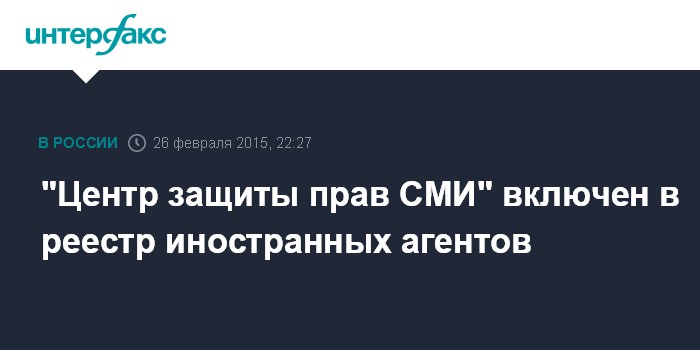Москва. 26 февраля. INTERFAX.RU - В реестр некоммерческих организаций - иностранных агентов включен Региональный фонд "Центр защиты прав СМИ". Как сообщили "Интерфаксу" в пресс-службе министерства, он стал 42-м в списке.