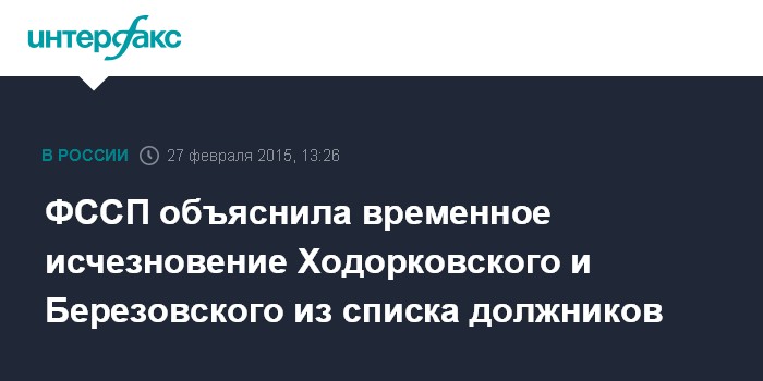 ФССП объяснила временное исчезновение Ходорковского и Березовского из списка должников