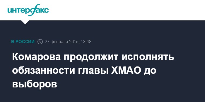 Москва. 27 февраля. INTERFAX.RU - Президент Владимир Путин положительно оценил результаты работы Натальи Комаровой на посту губернатора Ханты-Мансийского автономного округа и сообщил, что подпишет указ о возложении на нее обязанностей и.о. руководителя региона.