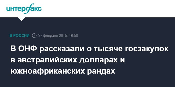 Москва. 27 февраля. INTERFAX.RU - ОНФ выявил 3,5 тысячи закупок в иностранной валюте, в том числе более тысячи - в австралийских долларах и южноафриканских рэндах.