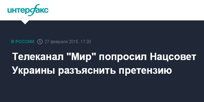 Телеканал "Мир" попросил Нацсовет Украины разъяснить претензию
