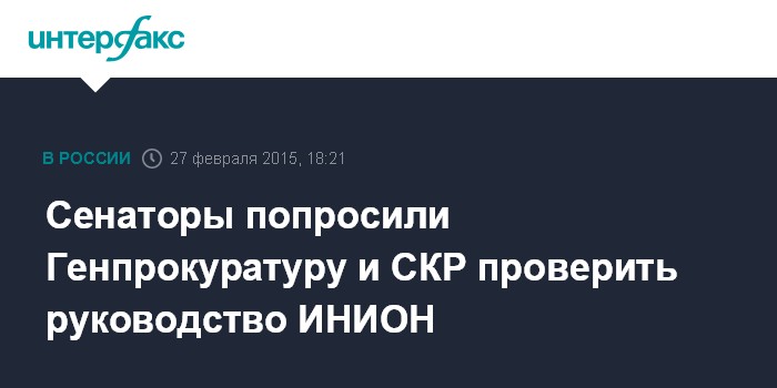 Москва. 27 февраля. INTERFAX.RU - В Совете Федерации сочли необходимым проведение Генеральной прокуратурой и Следственным комитетом проверки деятельности руководства ИНИОН Российской академии наук по факту недавнего пожара в библиотеке института.