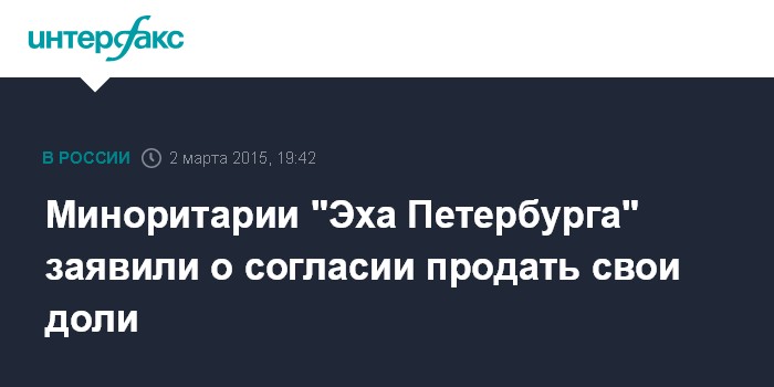 Москва. 2 марта. INTERFAX.RU - Миноритарные акционеры радиостанции "Эхо Петербурга" заявили, что согласны продать свои доли, говорится в заявлении руководителей станции.