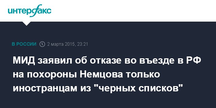 МИД заявил об отказе во въезде в РФ на похороны Немцова только иностранцам из "черных списков"