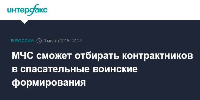 "В Федеральный закон "О воинской обязанности и военной службе" вносятся изменения, предусматривающие разграничения полномочий военных комиссариатов, которые являются территориальными органами Минобороны России, и спасательных воинских формирований МЧС России по отбору кандидатов на военную службу по контракту. В настоящее время комплектование спасательных воинских формирований МЧС России военнослужащими, проходящими военную службу по контракту, производится через военные комиссариаты. Такой способ комплектования при существующей специфике работы спасательных воинских формирований МЧС, связанной с риском для жизни и здоровья личного состава и с необходимостью поддержания его высокой моральной и психологической устойчивости, не в полной мере позволяет проводить качественный отбор кандидатов для прохождения военной службы по контракту в спасательных воинских формированиях МЧС", - отмечается в сообщении.