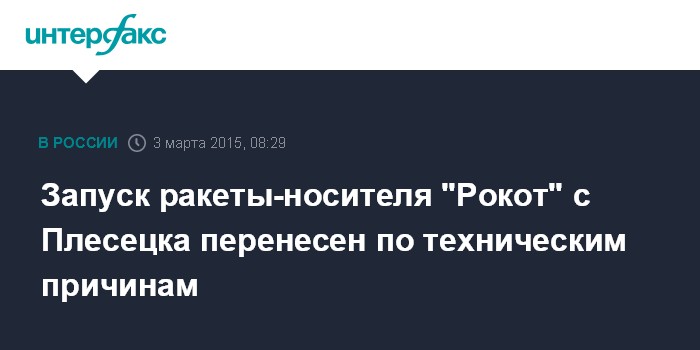 Москва. 3 марта. INTERFAX.RU - Планировавшийся на вторник запуск с космодрома Плесецк ракеты-носителя "Рокот" с тремя спутниками связи перенесен на неопределенный срок по техническим причинам, сообщил "Интерфаксу" источник в ракетно-космической отрасли.