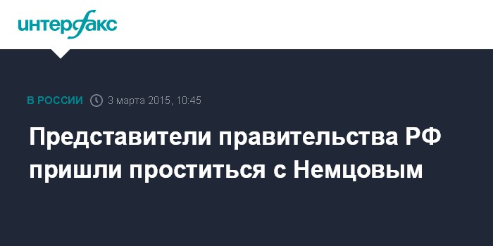 Ранее глава правительства Дмитрий Медведев выразил глубокие соболезнования родным и близким Немцова. Он также прислал во вторник траурный венок от имени председателя правительства.