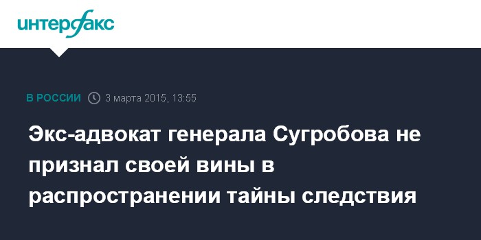 Экс-адвокат генерала Сугробова не признал своей вины в распространении тайны следствия