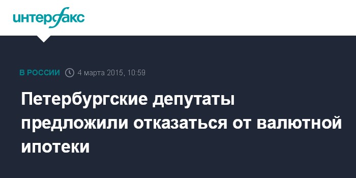 Москва. 4 марта. INTERFAX.RU - Законодательное собрание Санкт-Петербурга в среду обратилось к российскому правительству с просьбой рассмотреть ряд мер по защите ипотечных заемщиков, взявших кредиты в иностранной валюте.