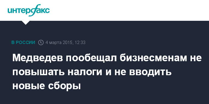 Медведев пообещал бизнесменам не повышать налоги и не вводить новые сборы