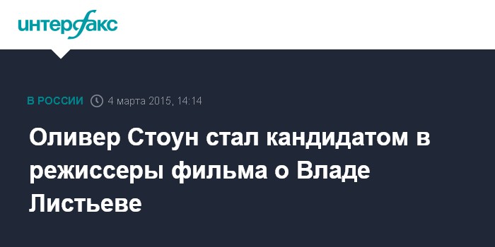 Москва. 4 марта. INTERFAX.RU - Обладатель премии "Оскар", американец Оливер Стоун рассматривается в качестве режиссера художественного фильма о тележурналисте Владиславе Листьеве, убитом 20 лет назад, сообщили "Интерфаксу" в компании "ПрофиСинема".