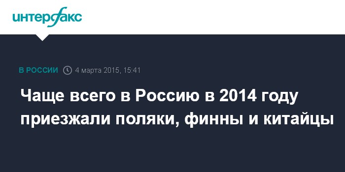Чаще всего в Россию в 2014 году приезжали поляки, финны и китайцы