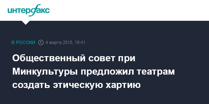 Москва. 4 марта. INTERFAX.RU - Общественный совет Министерства культуры РФ обратился к руководству Союза театральных деятелей (СТД) РФ с просьбой разработать этическую хартии театральных деятелей.