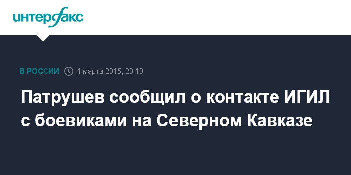 Москва. 4 марта. INTERFAX.RU - Террористическая группировка "Исламское государство Ирака и Леванта" (ИГИЛ) налаживает связи с боевиками на российском Северном Кавказе, заявил секретарь Совета безопасности Николай Патрушев.