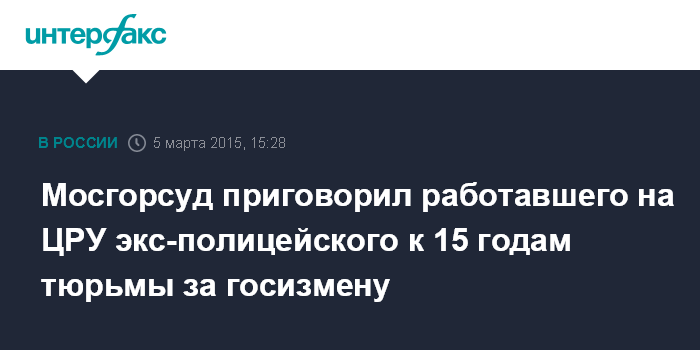 Мосгорсуд приговорил работавшего на ЦРУ экс-полицейского к 15 годам тюрьмы за госизмену