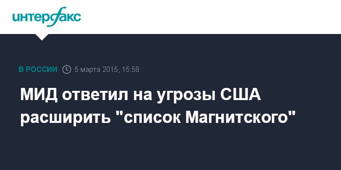 Москва. 5 марта. INTERFAX.RU - В Москве в ответ на угрозы США расширить "список Магнитского", в случае если расследование убийства Бориса Немцова не будет соответствовать нормам международного права, обвинили США в нарушении международного права.
