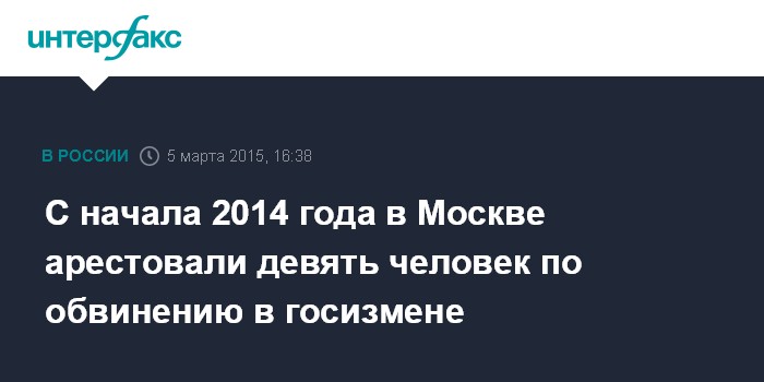 Москва. 5 марта. INTERFAX.RU - В Мосгорсуде заявляют, что в период с 1 января 2014 года по 3 марта 2015 года в столице было арестовано девять человек по обвинению в совершении государственной измены и шпионаже.