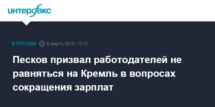Песков призвал работодателей не равняться на Кремль в вопросах сокращения зарплат