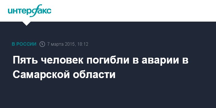 Москва. 7 марта. INTERFAX.RU - Пять человек погибли, еще двое пострадали в результате столкновения двух автомобилей в Волжском районе Самарской области, сообщает в субботу пресс-служба ГУ МВД по Самарской области.