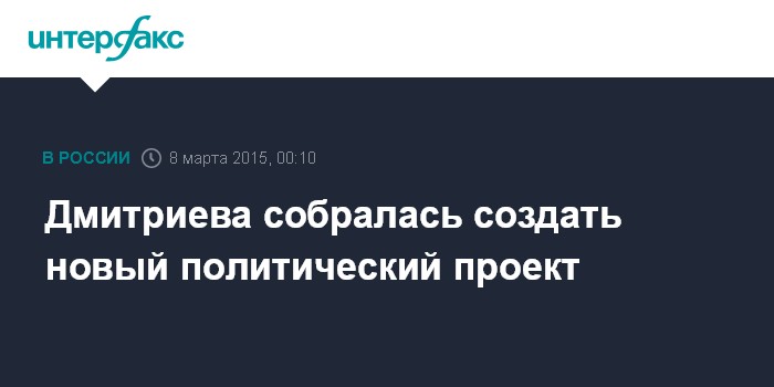 "Для будущего избирательного цикла мы - я и мои ближайшие сторонники - подготовим новый политический проект. Я думаю, что это будет достаточно широкая коалиция политических сил, государственников, тех, кто отстаивает социал-демократические принципы, национально ориентированную экономику, малый бизнес", - сообщила Дмитриева.