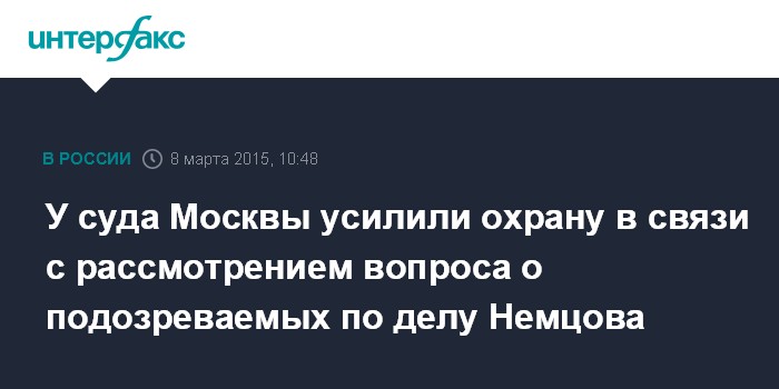 Москва. 8 марта. INTERFAX.RU - Меры безопасности усилены у здания Басманного суда, где, как ожидается, в воскресенье будет рассмотрен вопрос об избрании меры пресечения подозреваемым в убийстве политика Бориса Немцова.