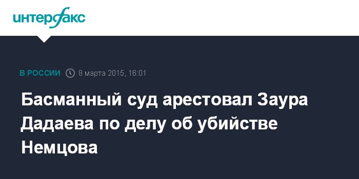 Москва. 8 марта. INTERFAX.RU - Басманный суд Москвы в воскресенье арестовал Заура Дадаева - фигуранта дела об убийстве политика Бориса Немцова.