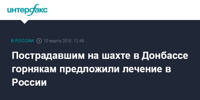 Москва. 10 марта. INTERFAX.RU - Россия готова принять на лечение горняков, пострадавших в результате аварии на шахте им. Засядько в Донецке, заявил заместитель главы МЧС РФ Владимир Степанов.