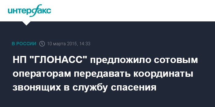 Москва. 10 марта. INTERFAX.RU - Российских операторов сотовой связи могут обязать сообщать местоположение телефона, с которого был совершен экстренный вызов. С таким предложением выступил президент Некоммерческого партнерства "Содействие развитию и использованию навигационных технологий" (НП "ГЛОНАСС") Александр Гурко.