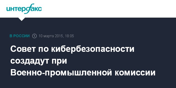 Москва. 10 марта. INTERFAX.RU - У Военно-промышленной комиссии появится новая структура - Совет по кибербезопасности, сообщил во вторник журналистам первый заместитель председателя Морской коллегии при правительстве РФ Сергей Шишкарев.
