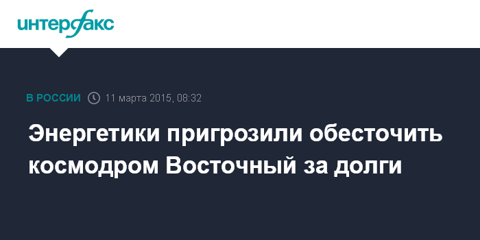 Энергетики пригрозили обесточить космодром Восточный за долги