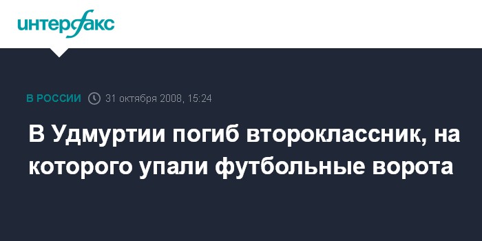 Москва. 31 октября. INTERFAX.RU - Следственное управление СКП РФ по Удмуртии начало проверку по факту смерти учащегося второго класса Пычасской средней школы, (село Пычас Можгинского района) на которого упали футбольные ворота.