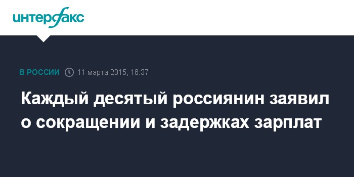 Москва. 11 марта. INTERFAX.RU - Около 15% россиян не исключают задержек зарплаты в течение ближайших месяцев, 5% - в течение ближайших недель, а 9% говорят, что это уже происходит, сообщили в среду в "Левада-Центре".