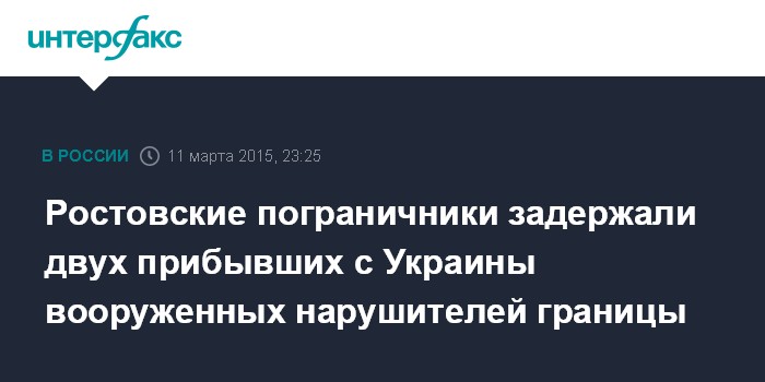 Москва. 11 марта. INTERFAX.RU - Пограничники задержали двух нарушителей госграницы, пытавшихся с оружием незаконно проникнуть в Россию с территории Украины в районе села Куйбышево в обход установленного пункта пропуска, сообщили агентству "Интерфакс-Юг" в пресс-службе Погрануправления ФСБ России по Ростовской области.