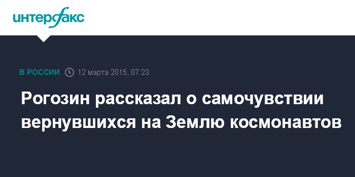 Москва. 12 марта. INTERFAX.RU - Российские космонавты Елена Серова и Александра Самокутяева, а также американский астронавт Барри Уилмор, вернувшиеся в четверг с МКС, чувствуют себя хорошо, сообщил вице-премьер России Дмитрий Рогозин.