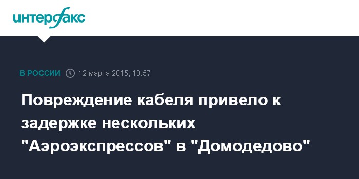 Москва. 12 марта. INTERFAX.RU - Повреждение кабеля стало причиной задержки "аэроэкспрессов" в аэропорт "Домодедово", сообщает пресс-служба Московской железной дороги в четверг.