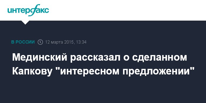 "Я уже сделал Капкову хорошее предложение, интересное. Но он пока не ответил", - сказал Мединский журналистам в четверг.
