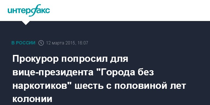Прокурор попросил для вице-президента "Города без наркотиков" шесть с половиной лет колонии